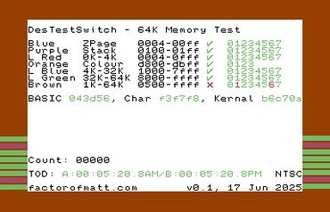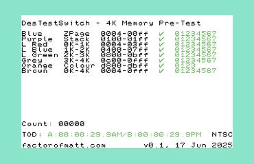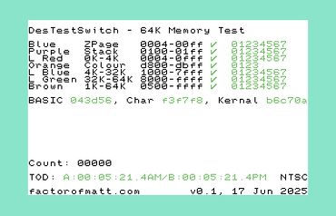 The custom DesTest MAX-Switch cartridge adds the capability to switch (hence the name) between the MAX-mode and regular cartridge-mode under program control.  The new DesTest Software allows the following features:
